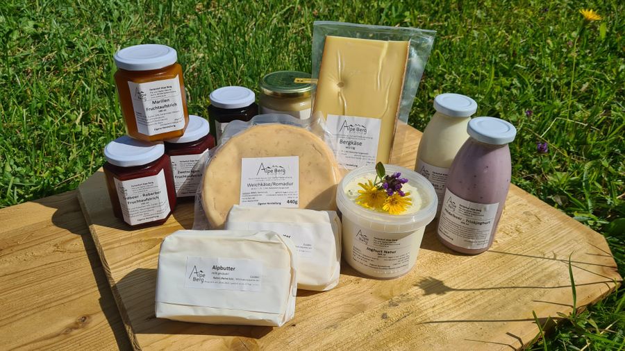 Stefan und Pia haben ca. 25 Rinder zur Mast und im Sommer bekommen sie weitere 13 Alpkühe, deren Milch sie zu traditionellem Alpkäse und anderen Milchprodukten verarbeiten.