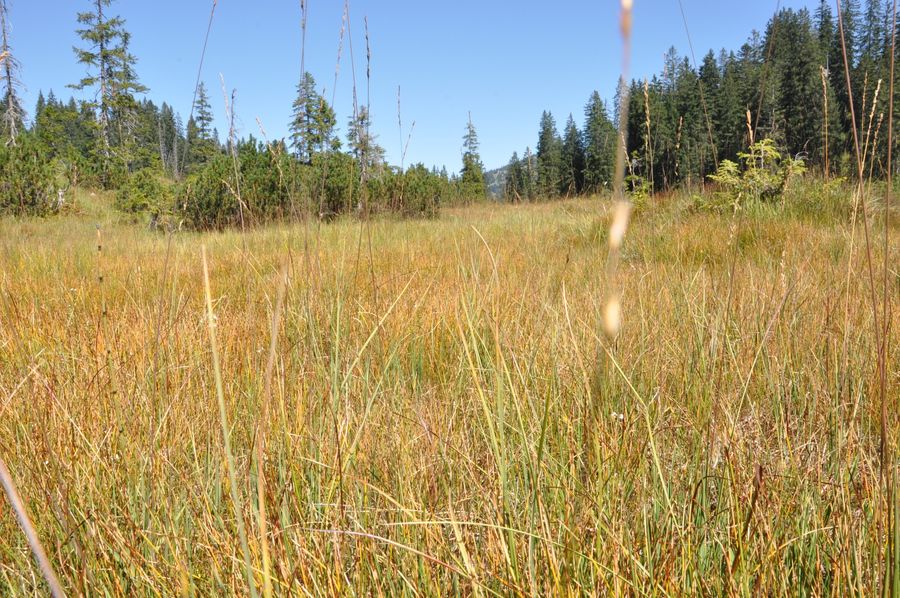Dieses Alpgebiet ist eine pittoreske und außergewöhnliche Landschaft. Das Hochmoor mutet fast nordisch an und ist ein faszinierendes Beispiel für die Vielfalt an Geologie, Flora und Fauna im Naturpark Nagelfluhkette. Dass ein Moor nicht nur trockene Wege bietet, versteht sich von selbst, aber besonders nach längeren Regenfällen können die Pfade ziemlich uneben und matschig sein. Daher sollte man bei dieser Wanderung auf festes Schuhwerk und eine gute Portion Konzentration achten.