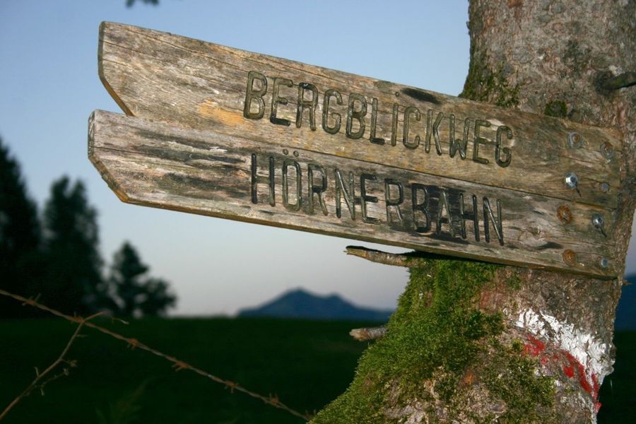 An der Talstation der Hörnerbahn gehst Du vor dem Gebäude links bergauf und folgst dem nächsten Wegweiser Richtung Kierwang.