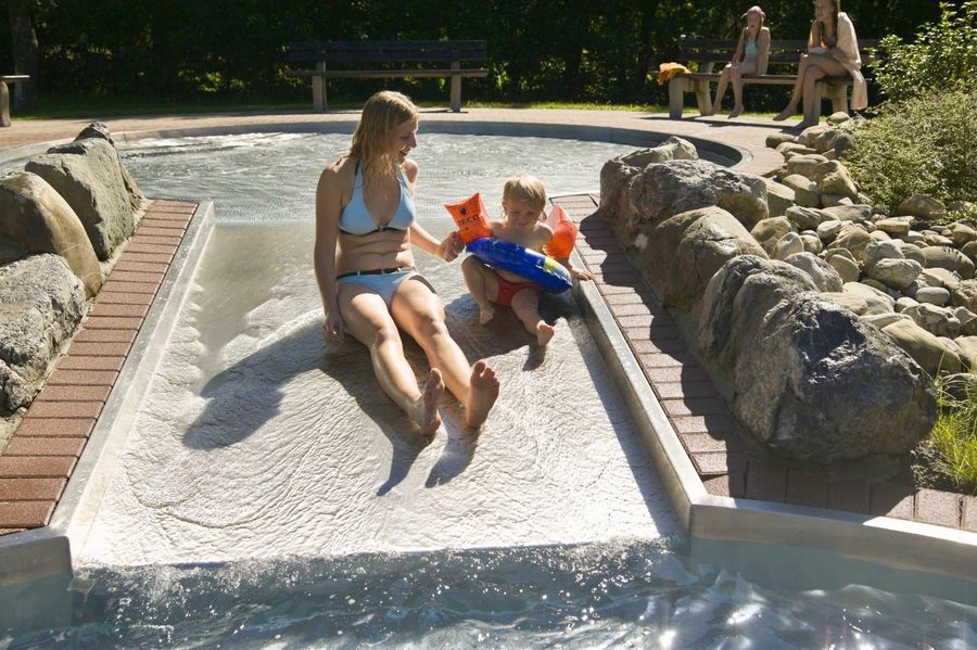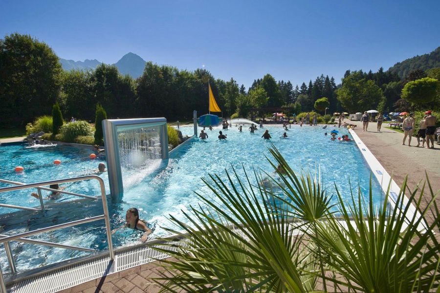 Zum Toben und Planschen braucht man eigentlich nur Wasser, aber wenn das Wasser im Strömungskanal saust, aus dem Massagepilz sprudelt oder einen auf der 58-Meter-Rutsche mitnimmt, macht es extra viel Spaß. Das kann man alles im Familien- und Erlebnisbad in Fischen haben – und dazu noch Kinderplanschbecken, Tropfenwerfer, Wasserspielgarten, Cafeteria und viele weitere Attraktionen.
