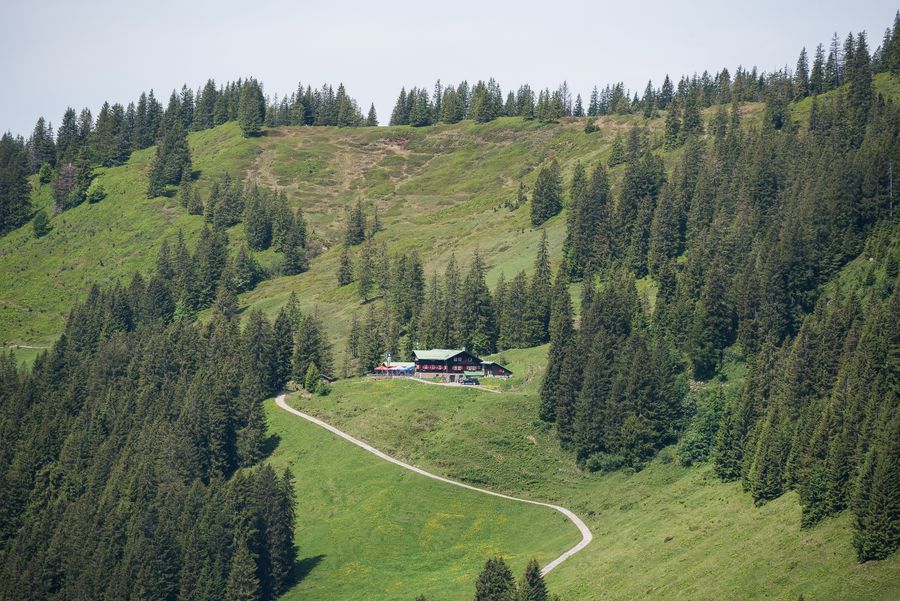 Nachdem Du den Kunst- und Besinnungsweg erkundet und die tolle Aussicht genossen habt, geht es weiter auf dem Panoramaweg Richtung Berghaus Schwaben. Hier geht es zunächst auf dem breiten Alpweg etwas bergab. Später kannst Du zwischen dem breiten Alpweg und einem schmaleren Steig, für die Geübteren von euch, wählen. Sollest Du noch nicht so viel Erfahrung im Bergsteigen haben, kannst Dur dem Panoramaweg und somit auch der Expedition Nagelfluhkette bis zum Berghaus Schwaben folgen. Die spannenden Drehschilder vom Naturpark Nagelfluhkette erklären Dir, wie z.B. ein Schutzwald aufgebaut ist oder warum Bäume so große Wurzeln haben. Nach einer gemütlichen Brotzeit am Berghaus Schwaben führt Dich die Tour wieder zurück zur Bergstation.
