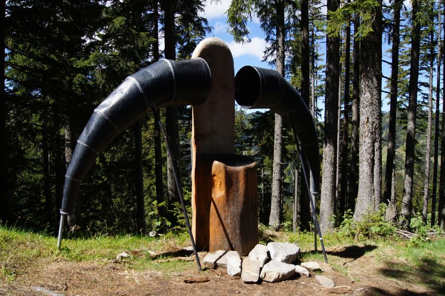 Deine Tour beginnt an der Gipfelstation der Hörnerbahn und führt Dich zuerst auf den Kunst- und Besinnungsweg zum Gipfel des Bolsterlanger Horn. Auf dem Kunst- und Besinnungsweg wirst Du bis zum Gipfel viele spannende Dinge, wie z.B. die Himmelsliegen, die Baumstamm-Liegen oder den Hörnerthron entdecken. Wenn Du Dich auf den Hörnerthron setzt, was kannst Du hören? Ist es eher ein Rauschen oder …. ?