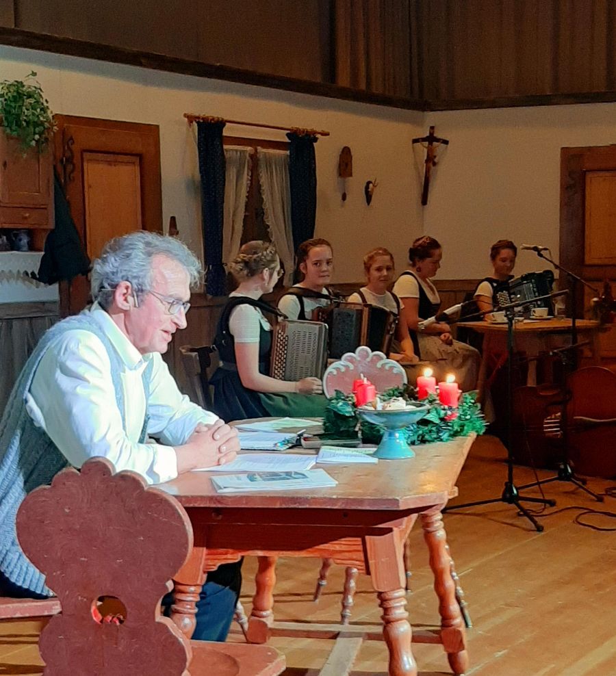 Wenn in Fischen zu einem vorweihnachtlichen Nachmittag unter dem Motto „s`wiehnächded Dôhuim“ eingeladen wird, dann darf man in erster Linie schöne alpenländische Volksmusik erwarten, die mit Können und Liebe von verschiedenen einheimischen Gruppen vorgetragen wird. Wenn das Ganze zusätzlich in eine Geschichte verpackt wird, dann verspricht es ein musikalisch hochwertiger Adventsnachmittag zu werden, der zum Schmunzeln und Sinnieren anregen kann.