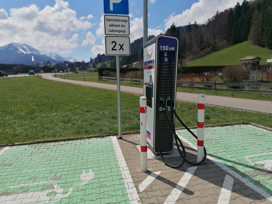 Die E-Ladestation für Elektroautos befindet sich in Fischen-Langenwang am Bekleidungsgeschäft Trigema.