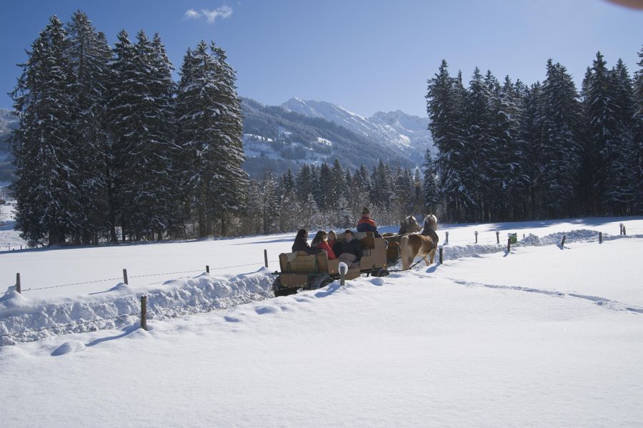 Eingepackt in Decken kannst Du die wunderschöne Landschaft rund um Fischen und der Hörnerdörfer in der Pferdekutsche erleben.