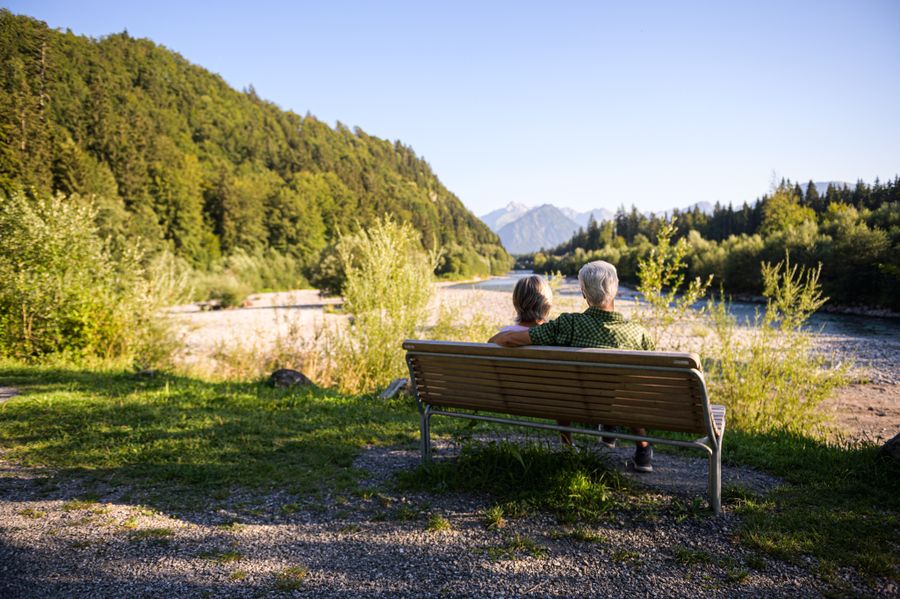 Vom Kurhaus Fiskina aus startest Du ganz gemütlich durch den Ort in Richtung Fischen Au. Zunächst überquerst Du die Iller, hältst Dich dann rechts zum Auwaldsee und fährst einmal um ihn herum. Anschließend folgt ein kurzer Anstieg auf einem Schotterweg in Richtung Schöllanger Burg. Noch unterhalb der Kirche führt Dich der Weg an der Gabelung links weiter in Richtung Rubi. Dort angelangt, fährst Du durch den Ort, am Hotel Viktoria vorbei und den Wiesenweg entlang ins Dummelesmoos. Der Weg führt Dich direkt am Käshüs, der Hofsennerei und dem Café vorbei, wo Du für eine kleine Rast einkehren kannst. Wieder in den Sattel geschwungen, geht es kurz darauf rechts an der Trettach entlang durch ein lichtes Wäldchen bis zum Illerursprung. Hier entsteht die Iller, die Namensgeberin des gesamten Tals, aus den drei Flüssen Breitach, Stillach und Trettach – ein spritzig-glucksendes Naturschauspiel, das Du nicht alle Tage siehst. Dein Rückweg nach Fischen erfolgt nun am Illerdamm entlang, erst rechts in Flussrichtung, später dann auf der linken Uferseite. Zum Schluss biegst Du links ab und gelangst durch den Kurpark zurück zu Deinem Ausgangspunkt.