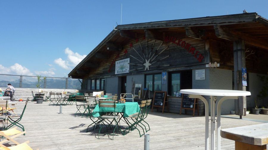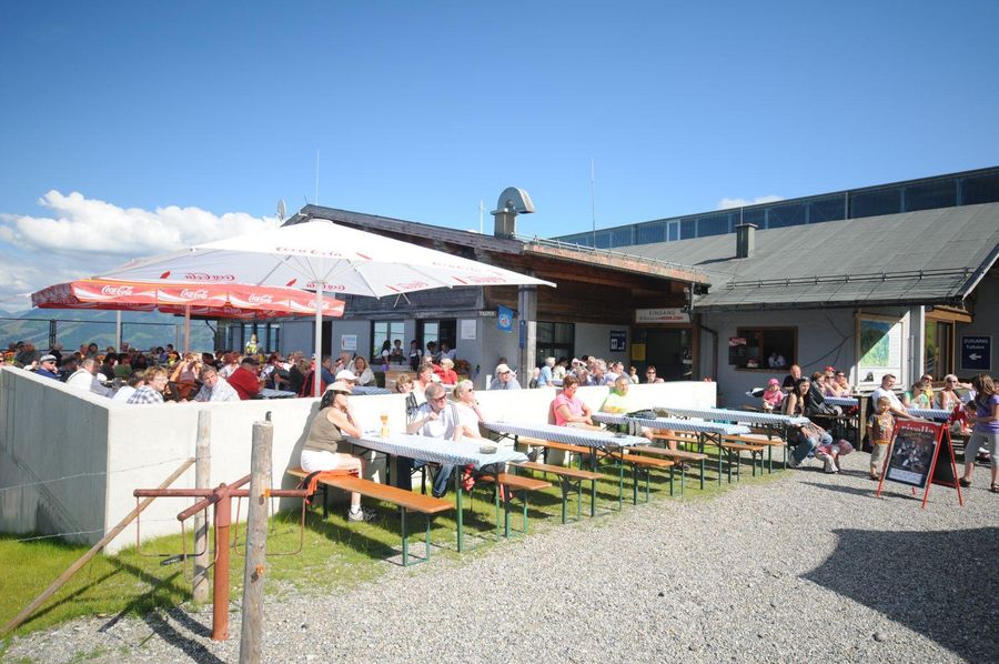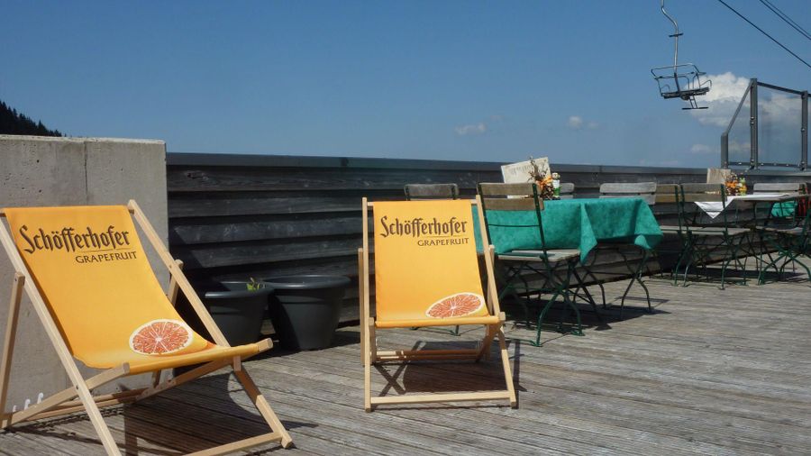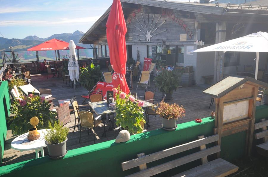 Der Name "s'Mibbadin" lässt auf die zentrale Lage an der Mittelstation der Hörnerbahn Bolsterlang schließen. Der Blick auf die Pisten und die umliegenden Berggipfel lässt die Mahlzeiten gleich nochmal so gut schmecken.