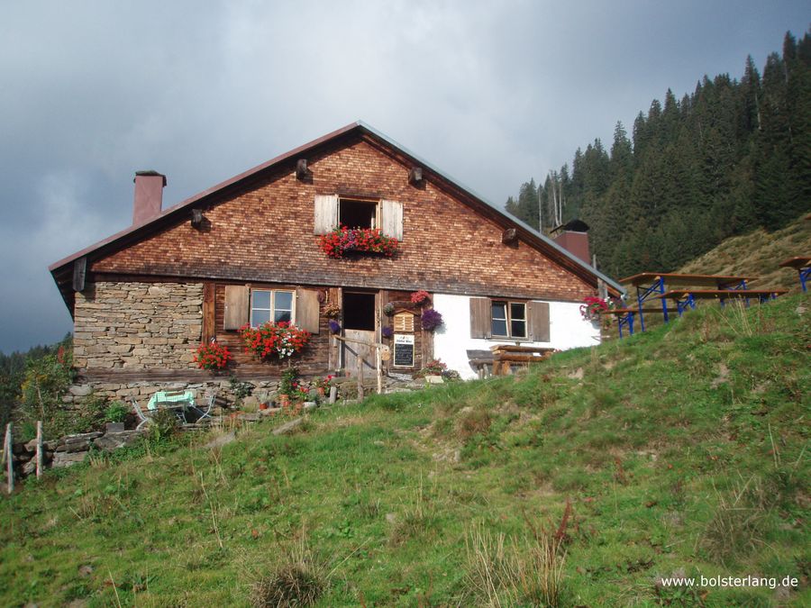 Ab hier führt der gut ausgebaute Weg vorbei an der Alpe Hinteregg zum Berghaus Schwaben. Von dort führt der Wanderweg ins Bolgental zum Fuße des Riedberger Horns. Den Gipfel des Riedberger Horns erreichst Du über den Grat in ca. 1 Stunde. Nach Grasgehren geht ist nun über ein steiles Wegstück, bei dem Du gut 350 Höhenmeter bergab überwindest. Ab Grasgehren kannst Du mit dem Linienbus nach Obermaiselstein und von dort nach Bolsterlang zurückkommen.