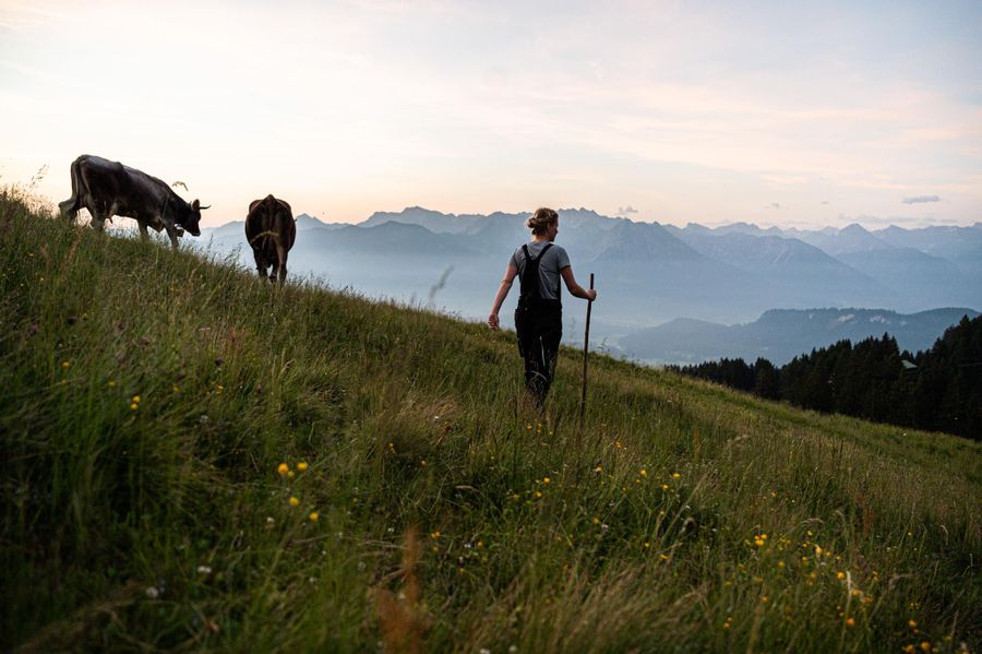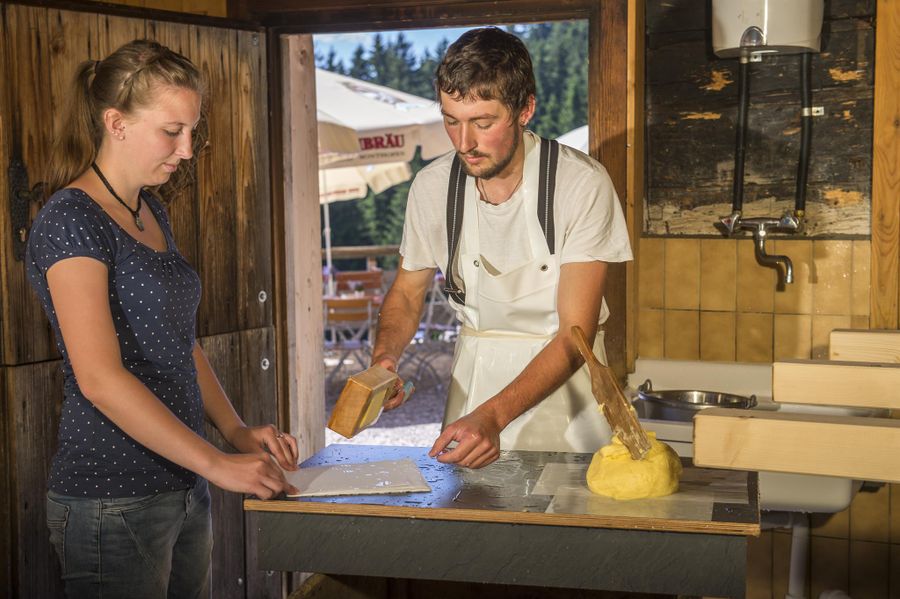 Die Alpe Ornach ist eine Sennalpe, auf der ca. 40 Milchkühe den Alpsommer verbringen. Aus täglich rund 600 Liter Milch macht der Senn in Handarbeit Bergkäse, Schnittkäse, Kräuterkäse und Butter. Beim Besuch auf der Alpe Ornach darf bei Gelegenheit auch gerne einmal der Käsekeller besichtigt werden. Auf der großen Sonnenterrasse mit herrlichem Blick auf die Allgäuer Bergwelt können Sie täglich deftige Brotzeiten mit selbstgemachtem Bergkäse, Schinken und Speck von den Alpschweinen, sowie Kaffee und hausgemachten Kuchen genießen. Auch für die kleinen Gäste gibt es viel zu entdecken. Einen kleinen Spielplatz, Hasen und natürlich die 40 Milchkühe.