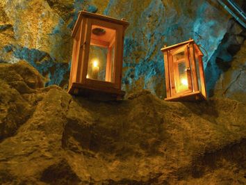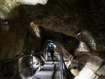 - Rucksäcke können im Eingangsbereich der Höhle deponiert werden