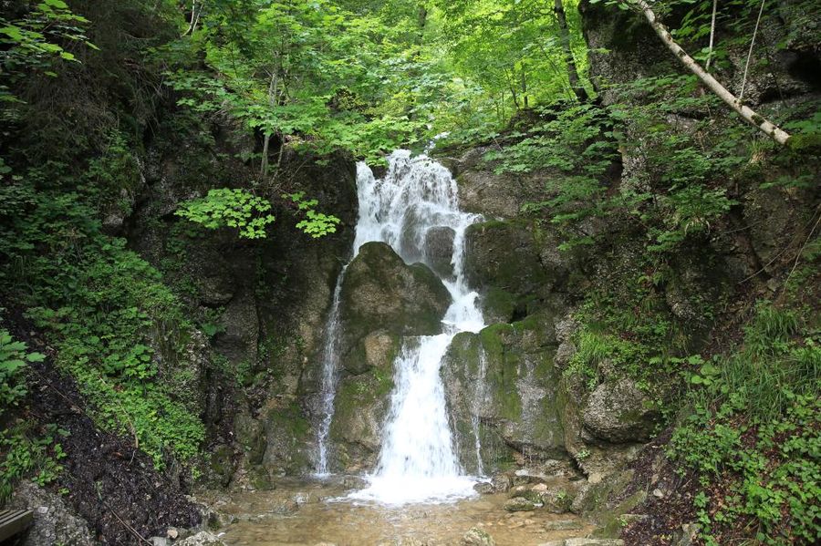 Nun geht es zurück zum Abzweig des Höhenweges und dann rechts ab. Der Weg ist aussichtsreich mit tollen Blicken auf Balderschwang, zu dem ringsherum 40 Alpen gehören. 16 spannende Stationen des parallel verlaufenden Balderschwanger Zeitweg („sich Zit long“) werten den Rundgang erfrischend faktenreich auf. Bald erreicht der Rundgang den tosenden Sägebach und seinen Tobel. Nach der Querung wird der Abstieg links nach Balderschwang ignoriert und es geht weiter geradeaus auf dem Höhenweg.