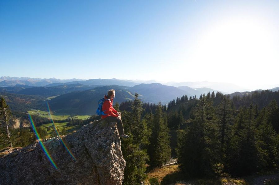 Es folgt nochmal ein kurzer Anstieg zum Girenkopf, von dem sich dann ein Pfad auf einem nahezu schnurgeraden Grat fast bis zum Stillberg erstreckt. Am Stillberg macht der Weg eine S-Kurve, es geht an der Vorderen Stillberg-Alpe vorbei und man wandert kräftig bergab zur Doserloch-Alpe. An der Kreuzung kurz nach der Alpe geht’s nach links weiter, man passiert die Klösterle-Alpe und steigt in vier Kehren kräftig talwärts. Der Weg verläuft beständig oberhalb einer Kreisstraße bis nach Balderschwang.