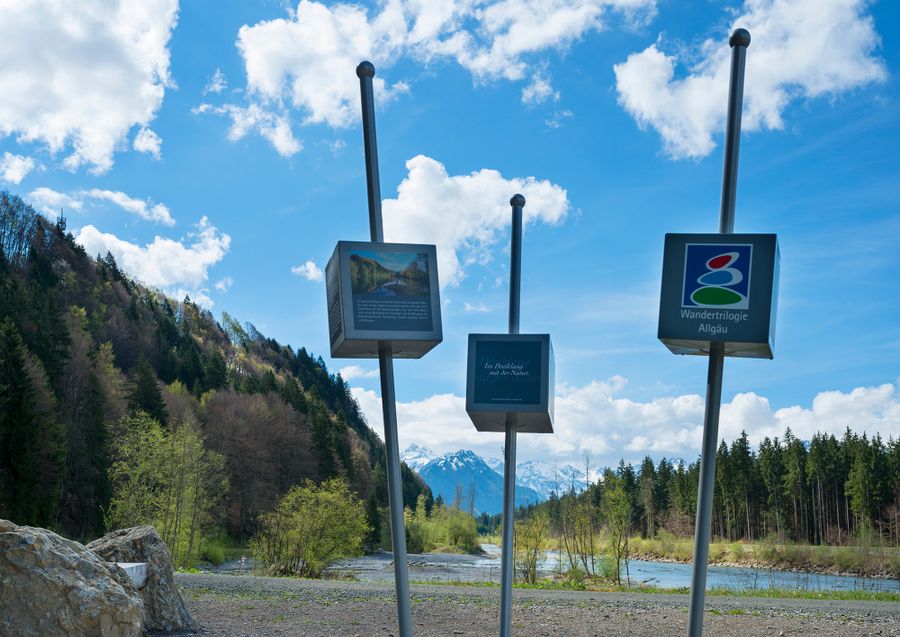 Am Wasser angekommen, ist man Zeuge von der „Geburt der Iller“. Denn die Iller hat keine normale Quelle, sie bildet sich aus dem Zusammenfluss der Gebirgsbäche Trettach, Breitach und Stillach – das ist der Iller-Ursprung.