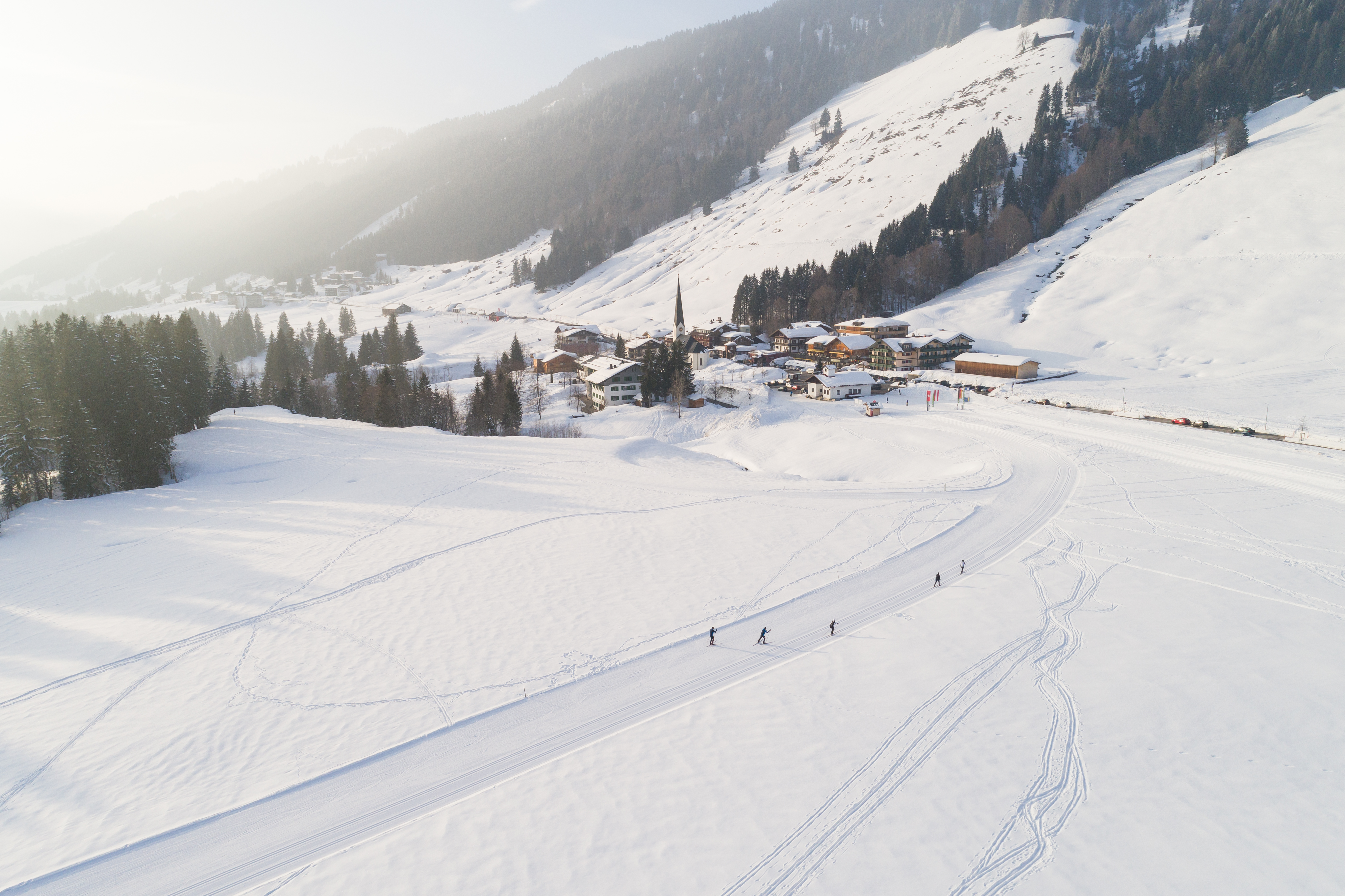 Der Mensch braucht Weiß. Braucht Kälte. Braucht klare Luft. Ein Update für Körper und Kopf – nicht ständig, aber regelmäßig. Langlaufen ist dafür ideal. Der Sport macht aus Bewegung, Licht und Stille eine belebende Mischung und bietet auf der DSV-zertifizierte Grenzlandloipe von Balderschwang nach Hittisau gut 40 Kilometer davon. Beim Gleiten arbeitet der ganze Körper, der Atem wird ruhig, das Herz schlägt im Takt der Bewegung. Alles kommt in Einklang – Muskeln, Atem, Gedanken. Und irgendwann, zwischen Schnee und Stille, übernehmen die Endorphine. Du spürst es als pures Winterglück.